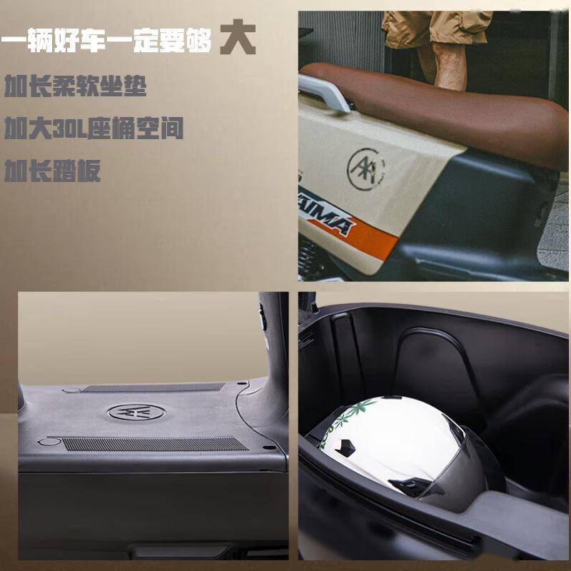 ✅有用储物空间:车座下超大的储物箱能够轻松放下头盔、雨衣和日常通勤包,前置物钩和USB充电接口更是交心规划,让手机导航不再忧虑没电。